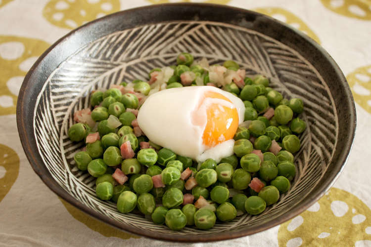 黄身がとろける うすいえんどうのソテー温玉のせのレシピ動画 作り方 Delish Kitchen